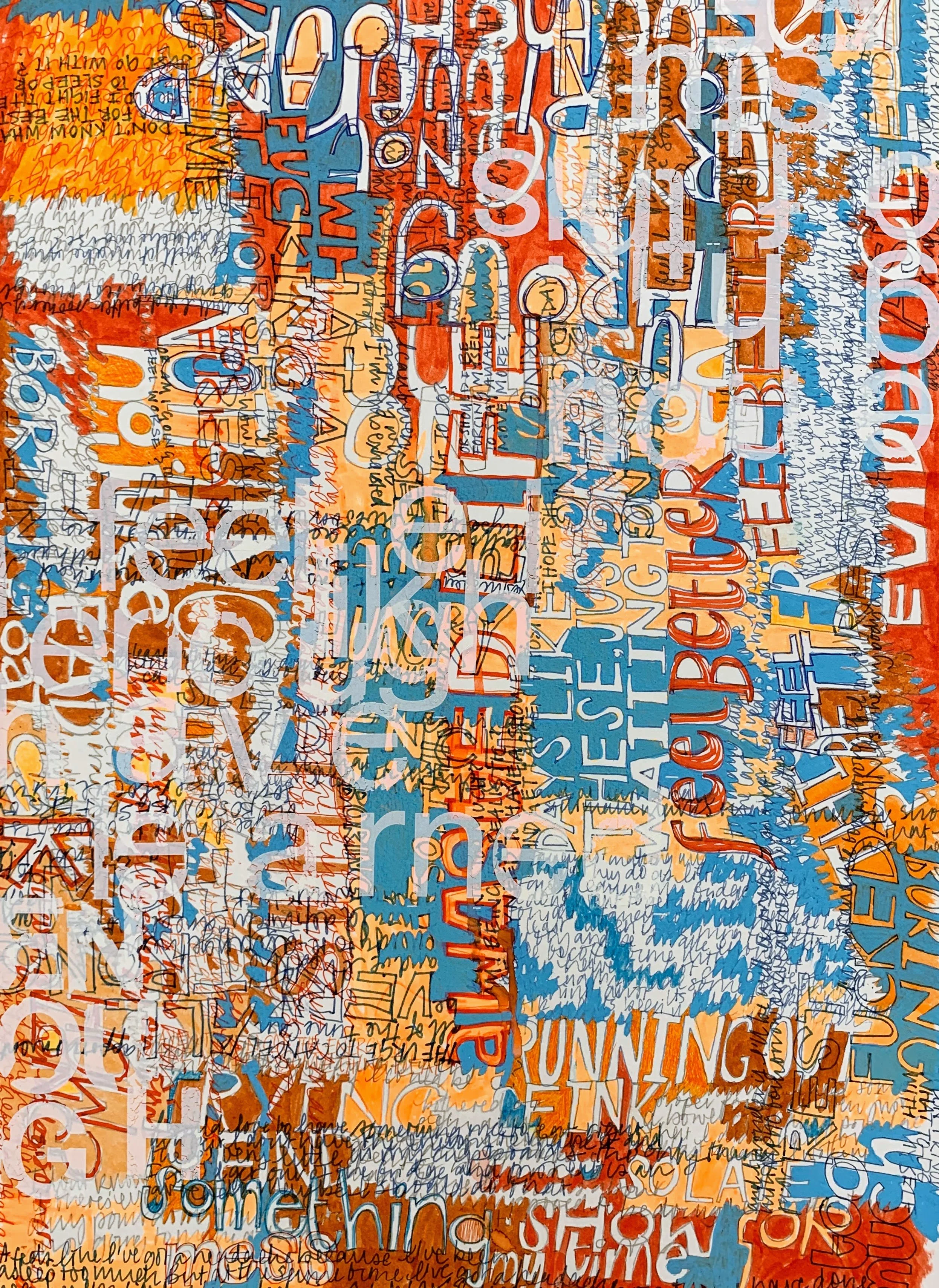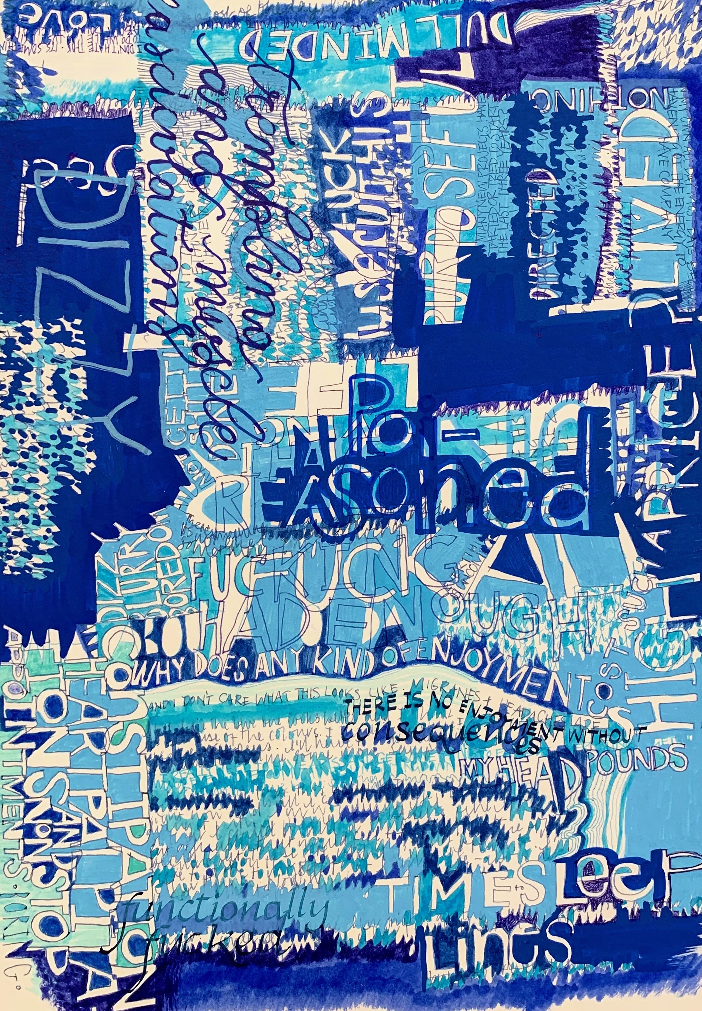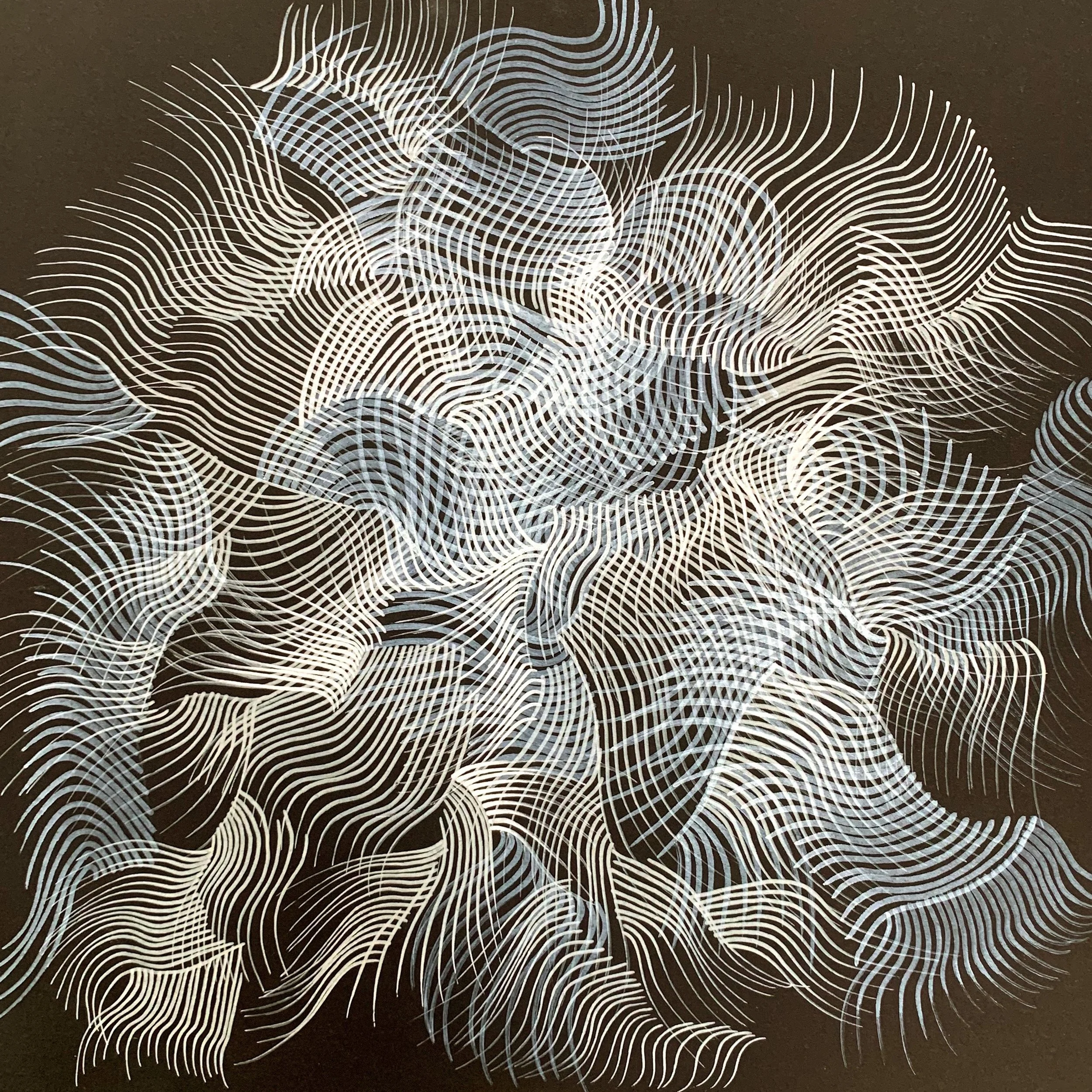 Jo’s work offers an original visual language for telling stories of water. Her unconventional choice of tools such as seaweed, feathers, stones and small pieces of driftwood combine with her hand made ink hues to produce unique marks in her abstract seascapes. Jo encourages sediments in the ink to swirl and settle in rivulets and banks, rendering aquatic microcosms.