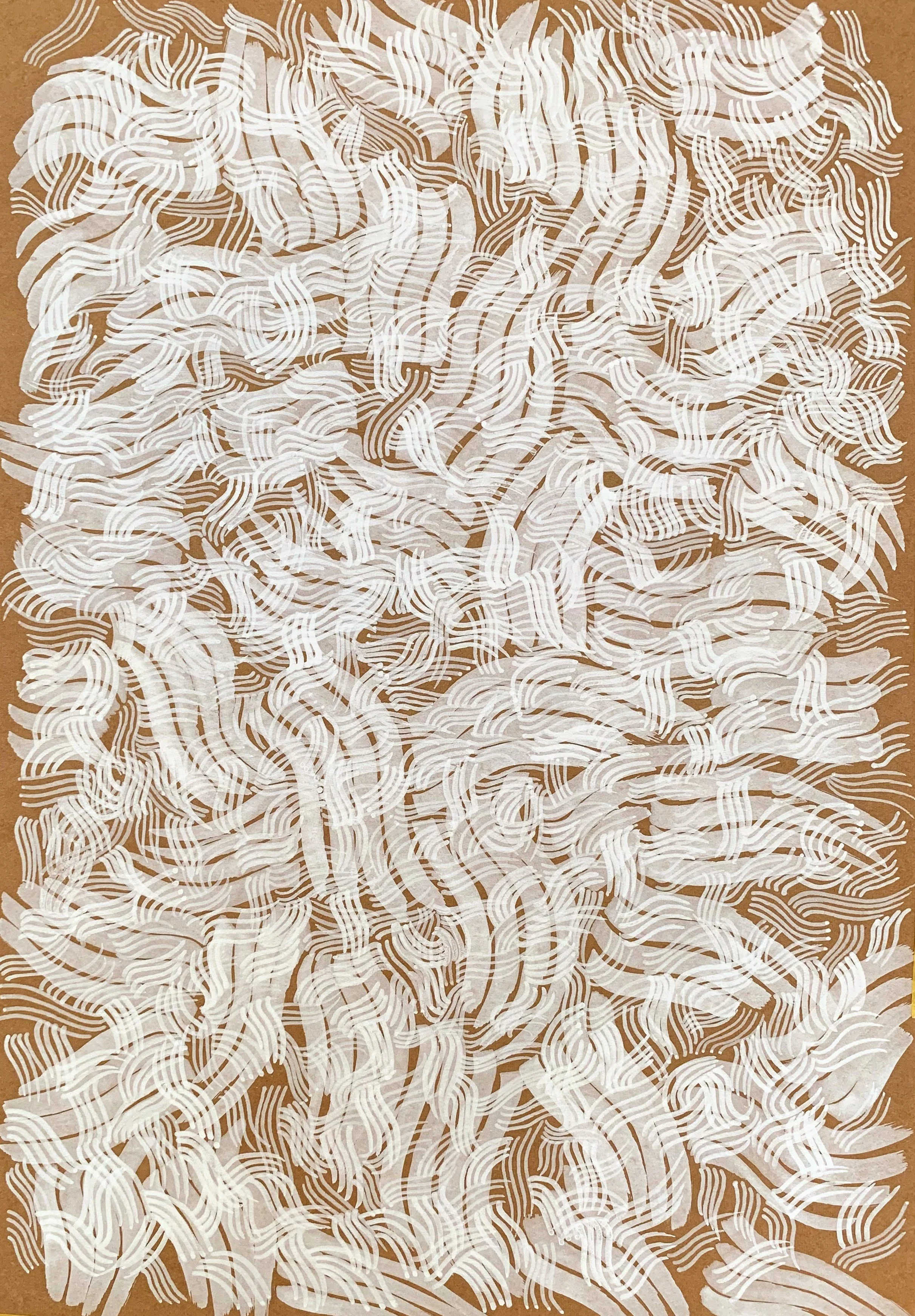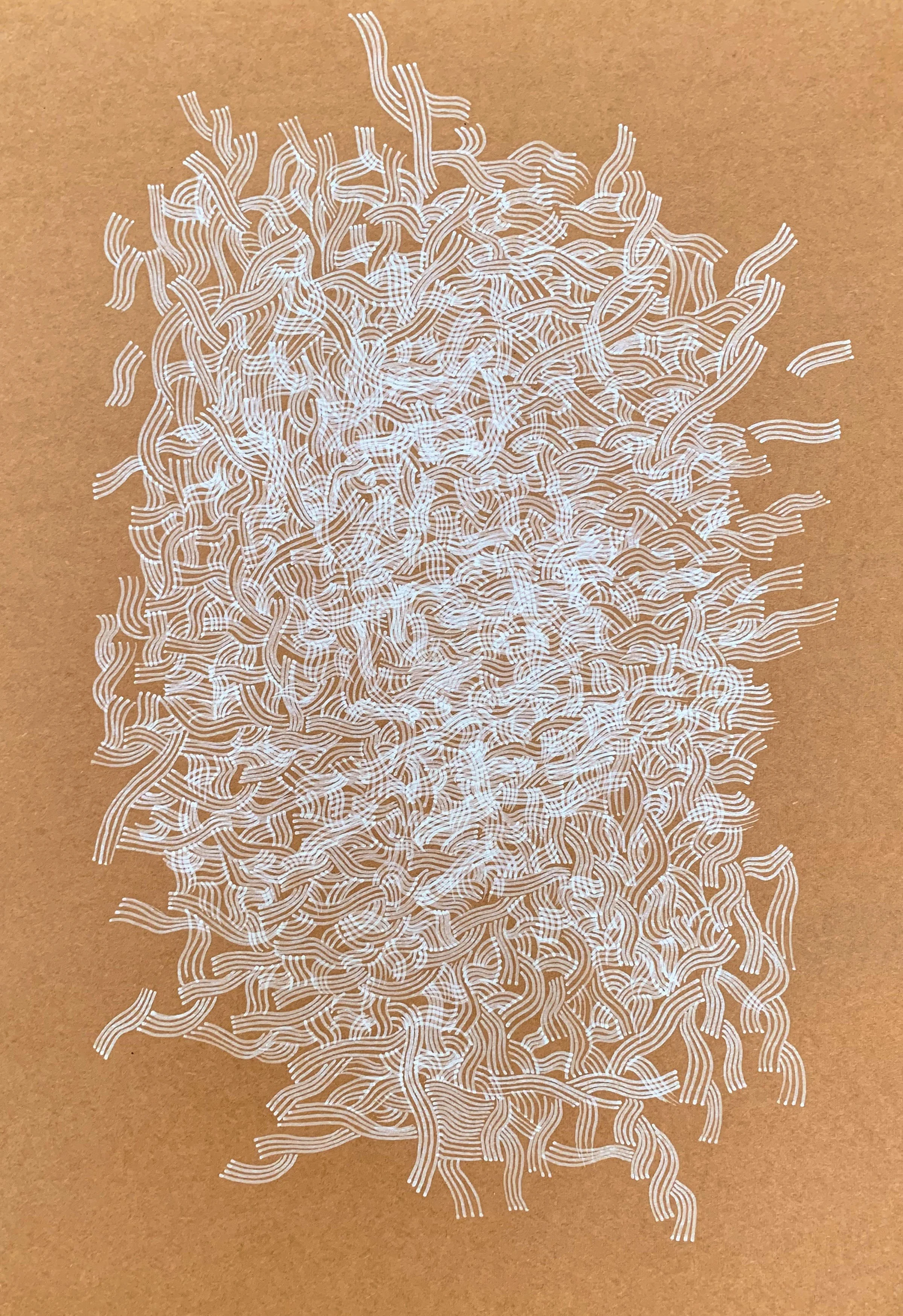 Her drawings, while rooted in close observation and understanding of water, are inspired by associated longings, memories, mood and movement. Her automatic process is repetitive, meditative, oscillating, and a response to internal shifts. The materials for Jo’s inks are collected locally, some salvaged in her own kitchen.