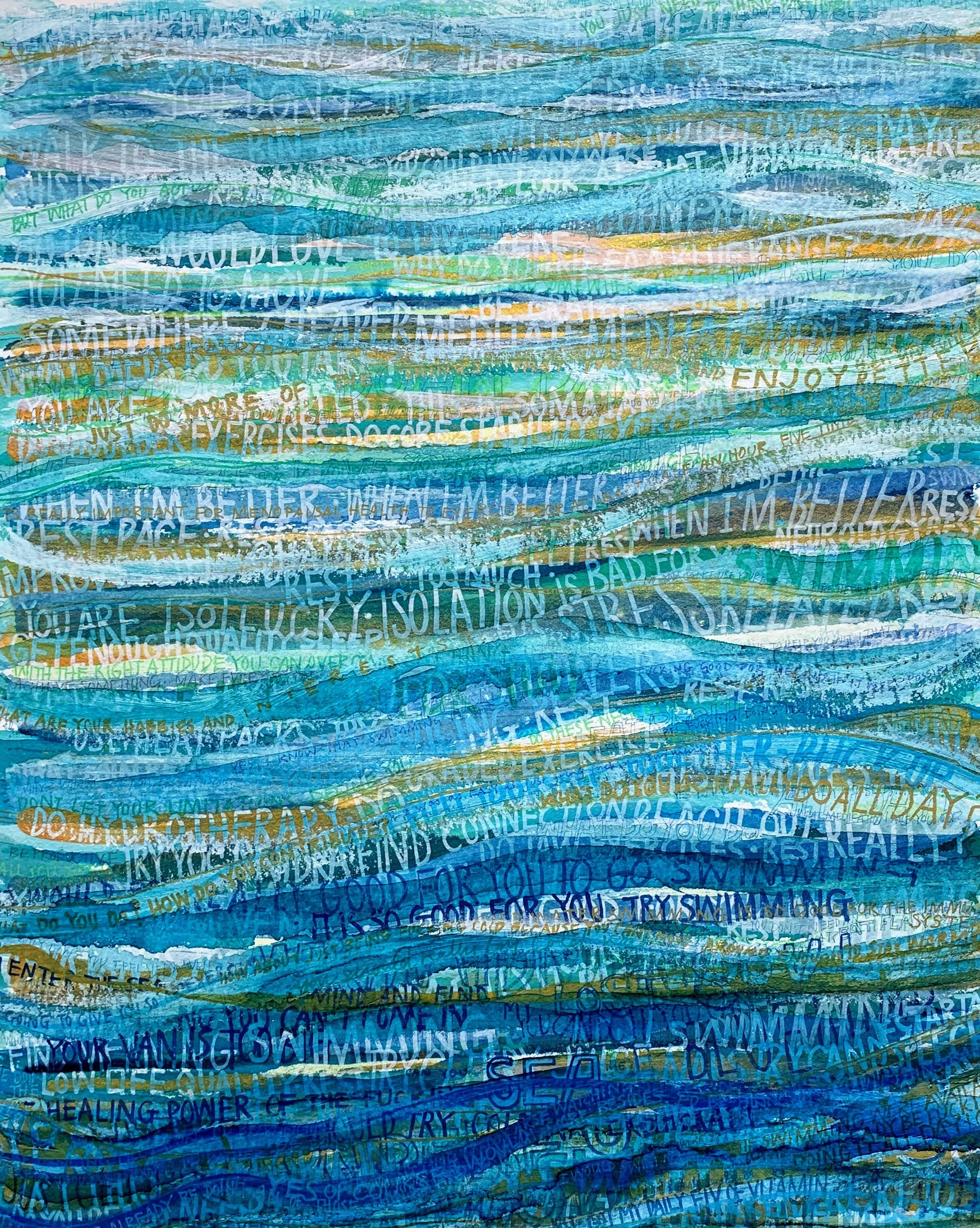 South Coast born, Poole Harbour based, and a graduate of Falmouth Art School, Jo has been working with themes of water in relation to sea journeys, surfing and swimming for more than 30 years.